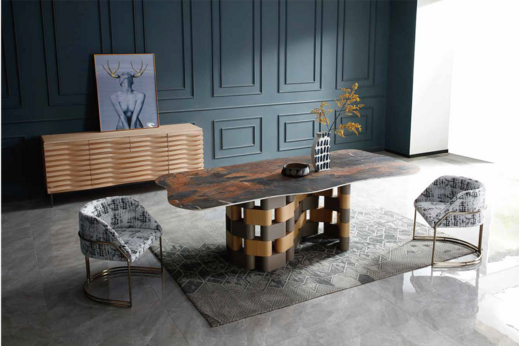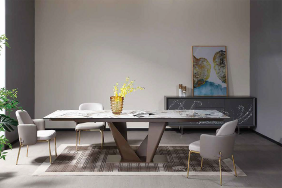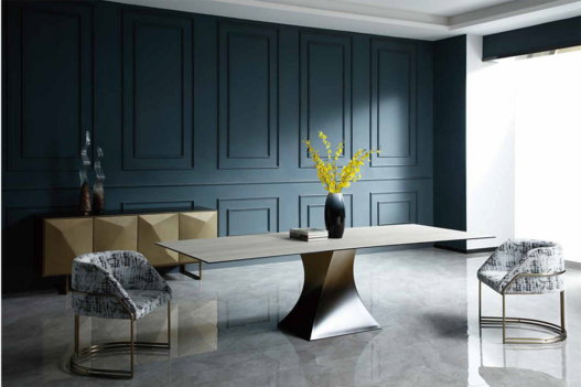 Dining table, S.Steel or Brushed gold base with ceramic top