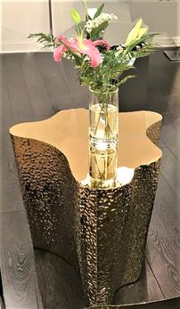 Hammered glass top, powder coating brushed gold: D24"X20"H